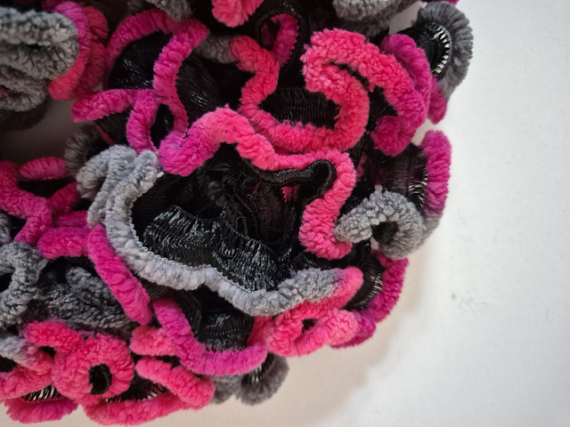 Echarpe noire et liseré chenille dégradé de gris et de rose