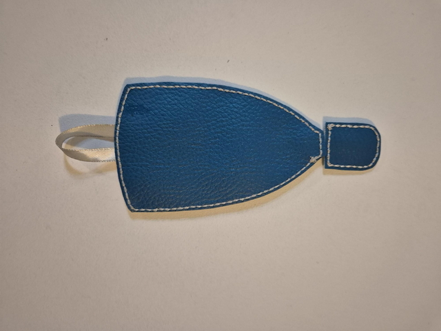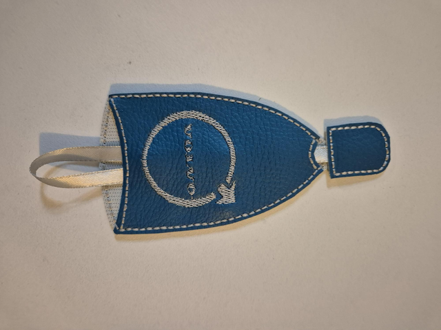 Porte clés en simili cuir bleu, broderie Volvo