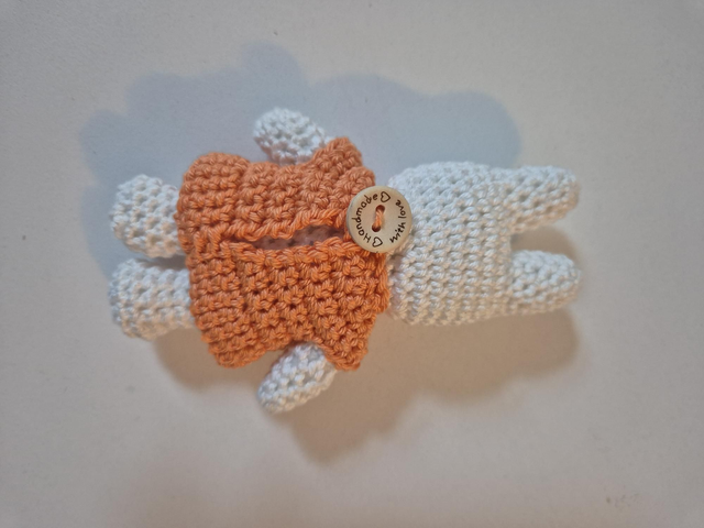 Miffy est crochetée en coton et rembourrée avec de la ouate synthétique. Elle mesure approximativement 13cm de haut.