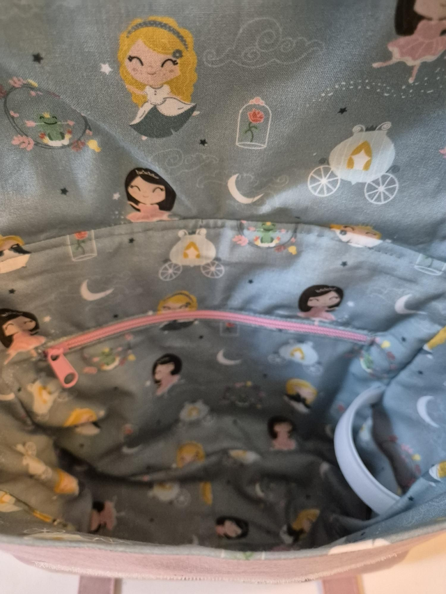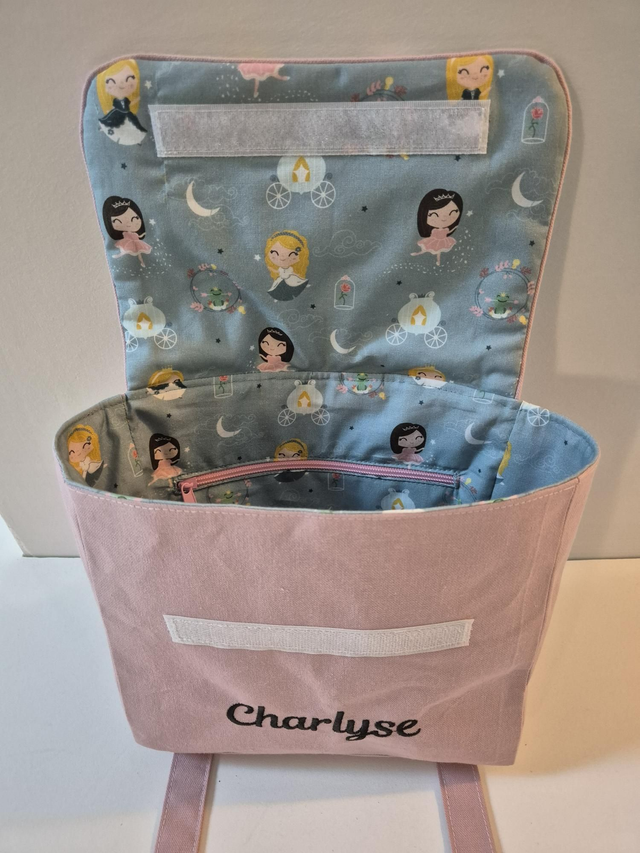 Sac à dos en coton, pour jeunes enfants, idéal pour la maternelle ou les après-midi hors de la maison. Les bretelles sont réglables et molletonnées pour plus de confort. Le sac mesure environ 23cm de large pour 20cm de haut. Il dispose d'une anse pour l'accrocher au porte-manteaux. Le rabat s'ouvre et se ferme grâce à un velcro pour plus d'autonomie. A l'intérieur, une poche zippée. Vous pouvez également y glisser quelques couches, une petite boîte de lingettes, un doudou (Eden ou Camille par exemple) et pourquoi pas une petite bouteille d'eau maintenue par le système de velcro ainsi que le goûter... C'est à vous de voir.