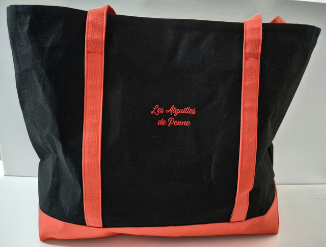 Sac en coton noir et orange, doublure coton écru.