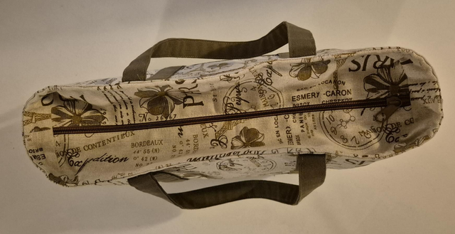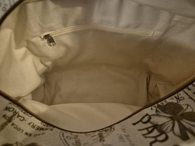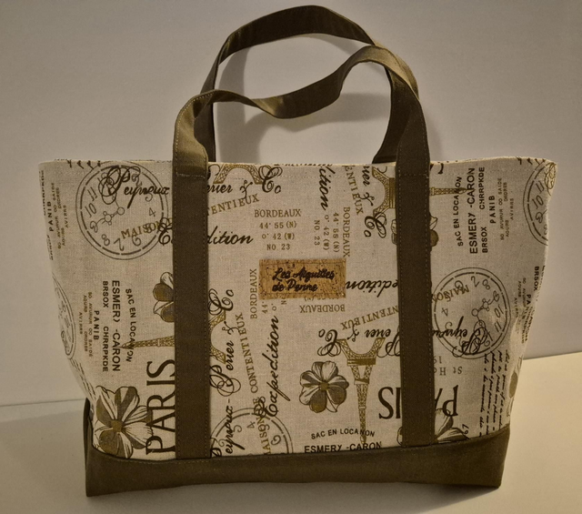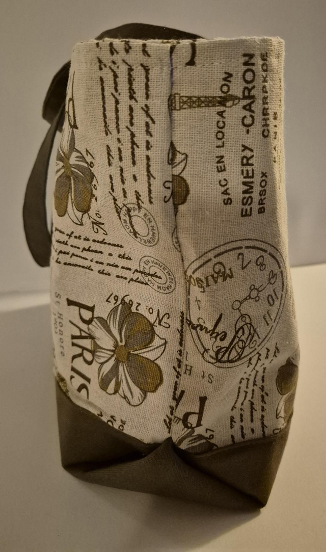 Sac en lin écru et marron et motifs Paris. Doublure coton écru.