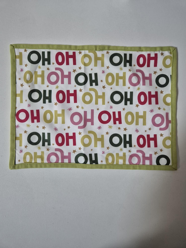 Set de table à colorier motifs Château, fée, dragon, renne, chevalier, oiseau, arc-en-ciel... Dimensions environ 35 par 24 cm. Utilisez des feutres lavables à 30°C. L'encre ne traverse pas. Lavez en machine à 30°C et repassez votre set. Vous le retrouverez prêt à être colorié à nouveau. Le modèle présenté est en coton et polyester avec un biais vert.