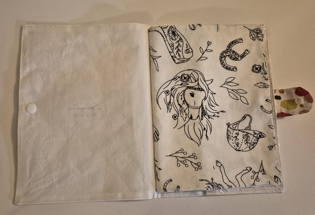 Dimensions du cahier fermé environ 25 cm de haut par 18 cm de large.Le modèle présenté est en coton vert et polyester aux motifs graffitis.