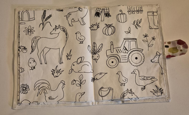 La 1ère page intérieure est dédiée aux créations de votre enfant. Les pages suivantes sont préimprimées aux motifs autour des chevaux, des cornets de glaces, des fusées, des astronautes et des animaux de la ferme... La trousse transparente vous permet de vous assurer facilement que tous les feutres sont bien rangés.